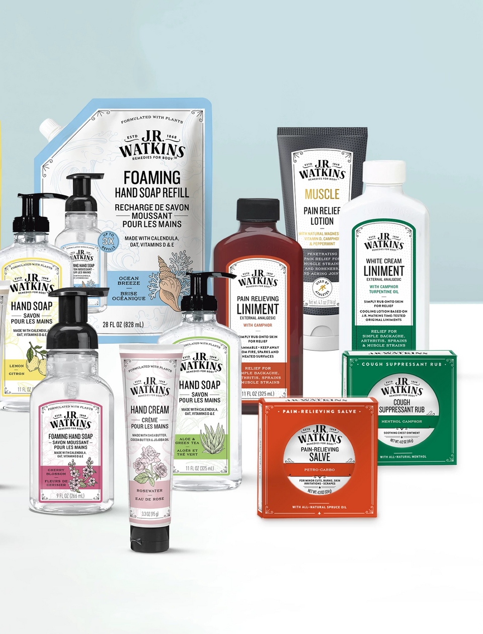 With apothecary beginnings, J.R. Watkins remedies have been trusted since 1868. Our products are consciously crafted with elements from nature and other thoughtful ingredients. From our hand soaps and body care in signature scents to our beloved heritage remedies, our products are cruelty-free, in sustainable packaging, and free from parabens, dyes, phthalates and silicones.